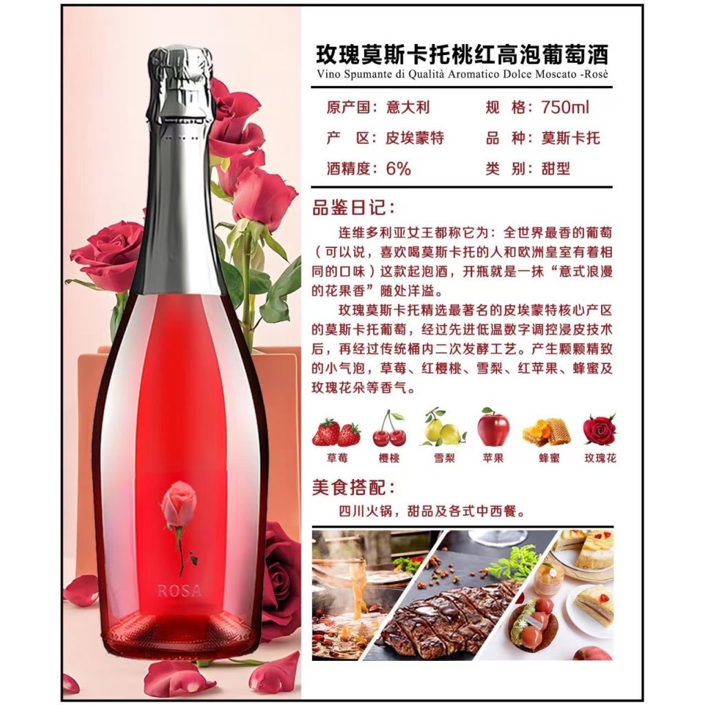 酒莊介紹:維多利亞女王都稱它為:全世界最香的葡萄(可以说,喜欢莫斯卡托的人和欧洲皇室有着相同的口味) ,這款氣泡酒,開瓶就是一抹“意式浪漫的花果香” 隨處洋溢。